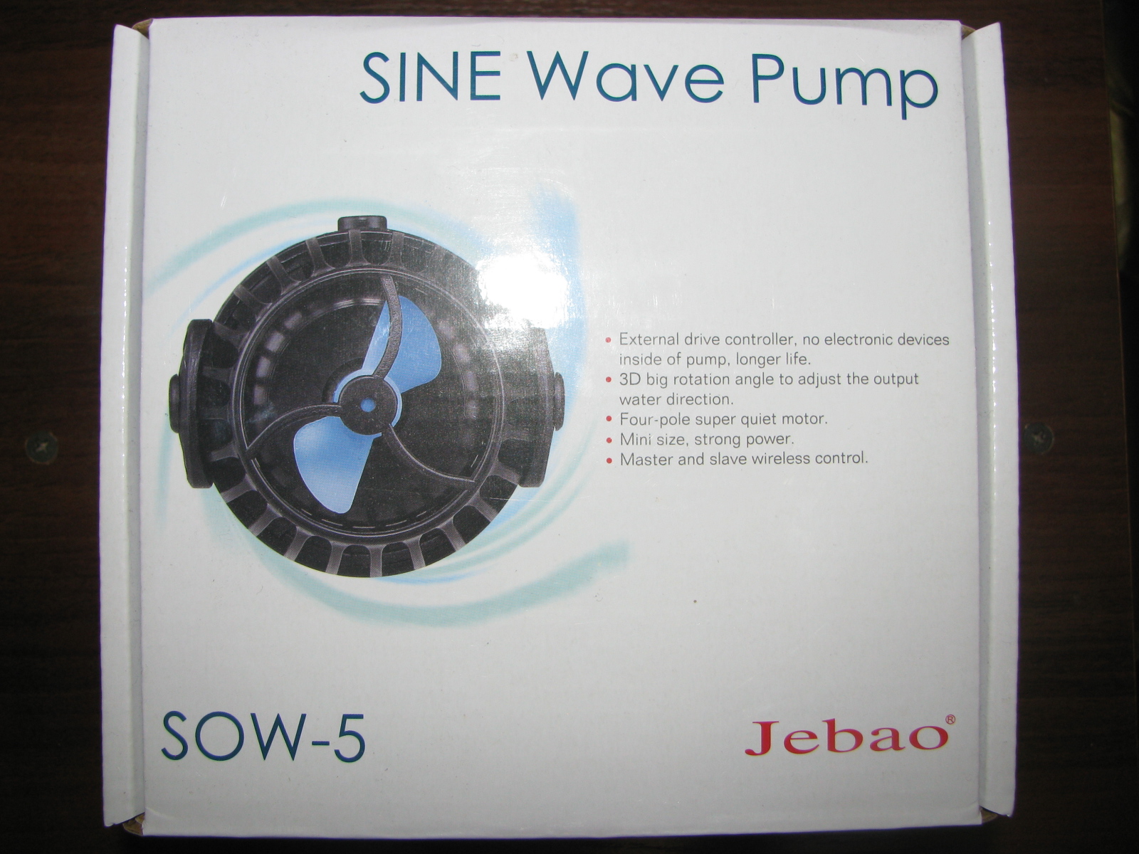 Новинка.Jebao добавила к модельному ряду SOW серию помп SOW5, SOW9, SOW16. Данная серия помп представлена в четырех полюсном исполнении, а так же вся электроника вынесена из помпы в контроллер,что увеличивает срок службы и плавность хода помпы.