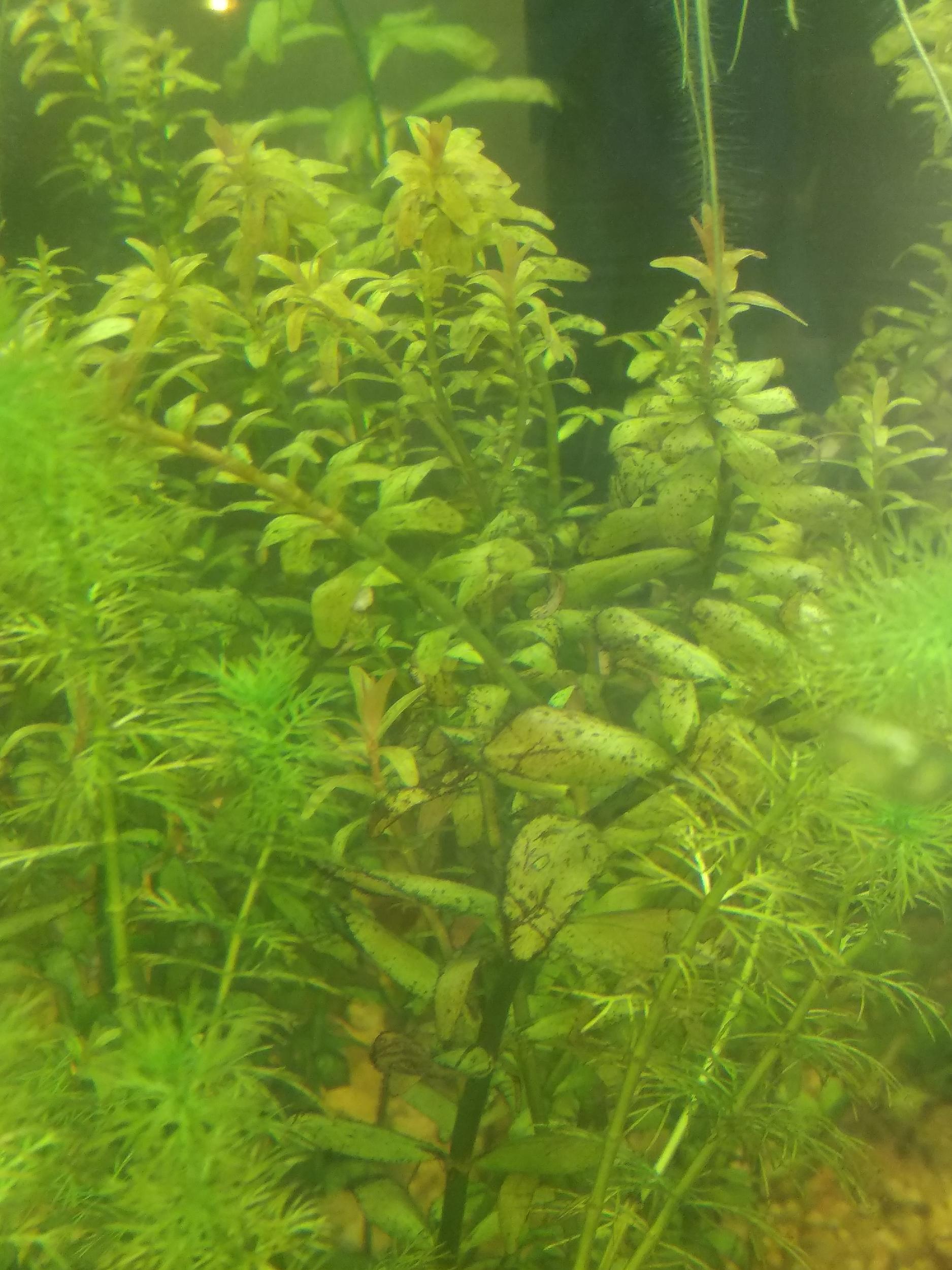 Из удобрений даю микро, макро, железо, калий, при посадке растений ложил таблетки. Все Ермолаева. Лью в качестве жидкого СО2 альгицид+СО2. При подготовке воды использую Антитоксин+К. Подмены воды в неделю 30-40%. Рыбы чувствуют себя не плохо, иногда чешутся не много.