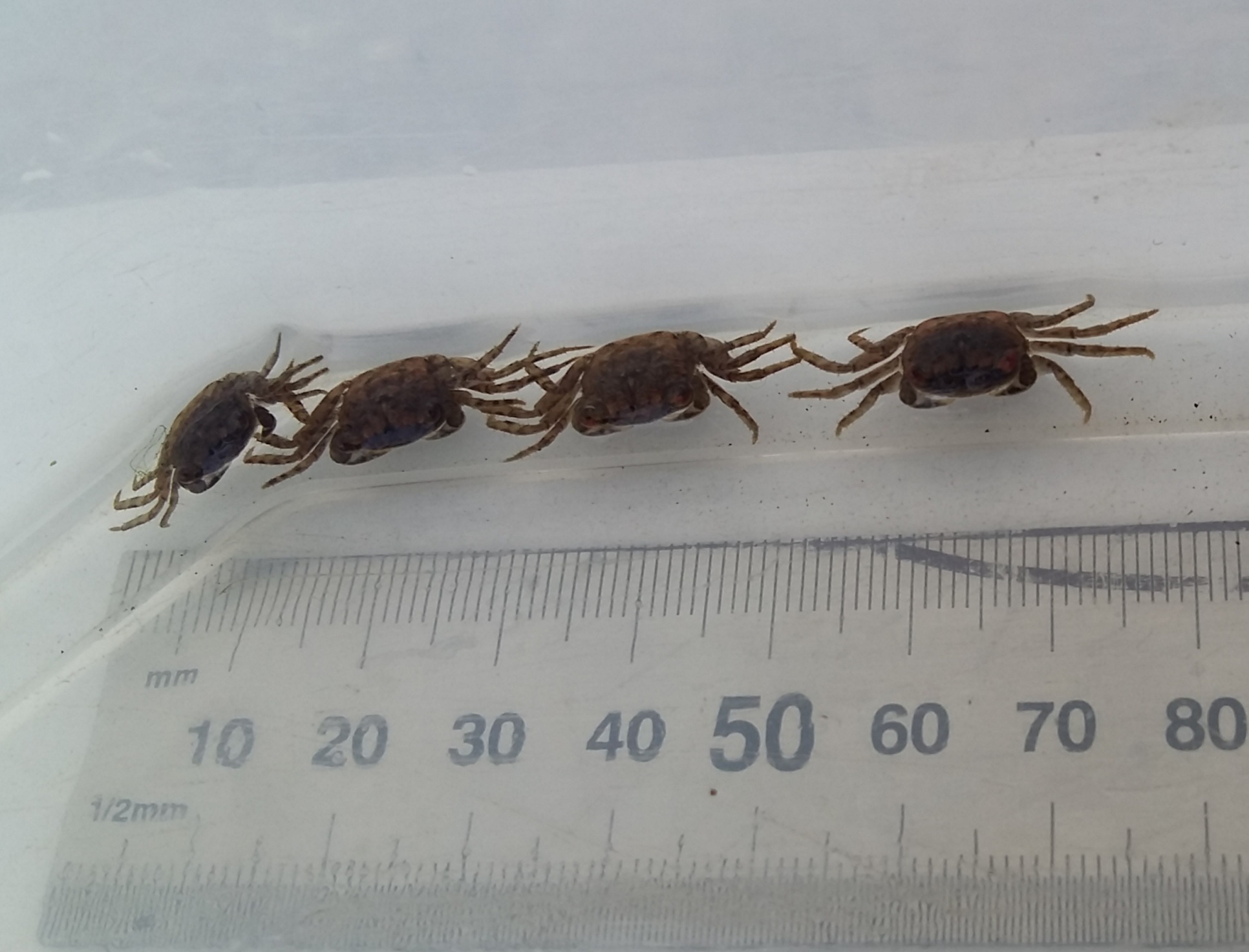 Молоді краби віком 3 місяця ще не зафаобовані -розмір 1 см
