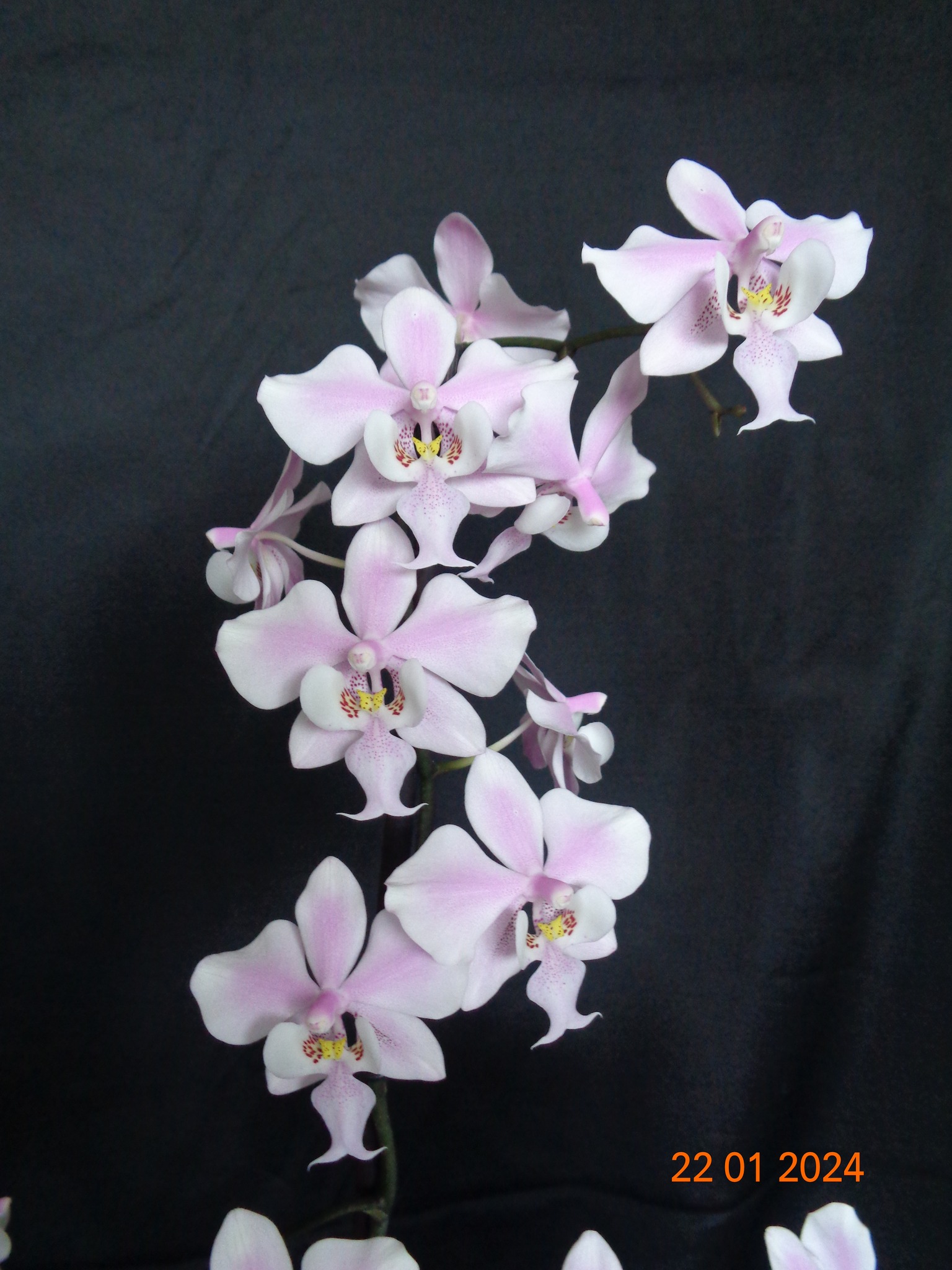 Phalaenopsis Joy Fairy Tale перше цвітіння вирощеного з фласочника без коренів..(з якого вирощений показано на останніх двох фото)