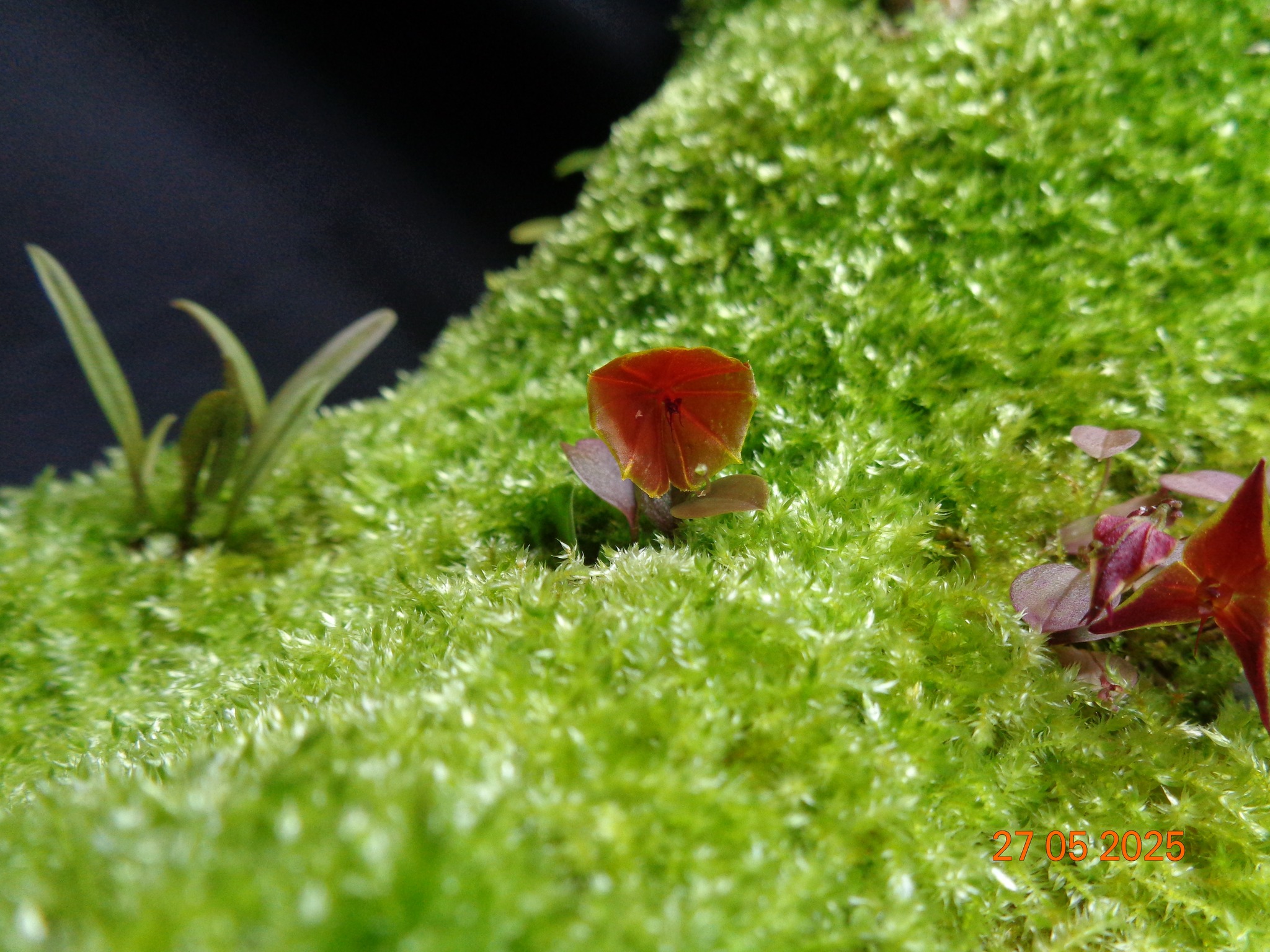 Lepanthes telipogoniflora посаджений два місяця назад виростив два нових роста (листка) ростить третього один зацвів другий ростить квітконос