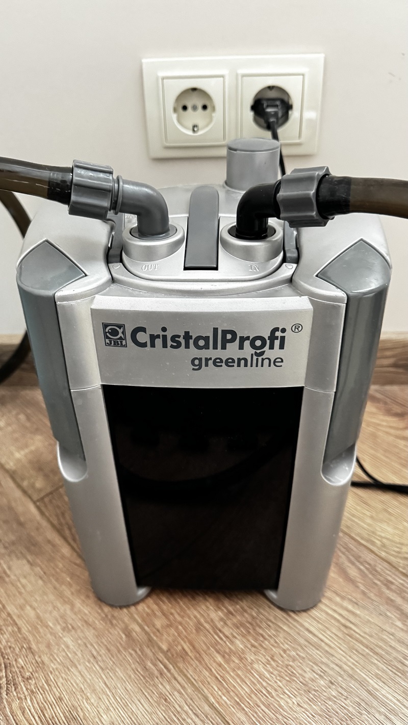 2 - Зовнішній фільтр JBL CristalProfi e701 greenline для акваріумів 60-200 л, стан супер, комплект фільтр, шланги, наповнювачі, трубки забору та подачі види, пара присосок. Був у використанні.