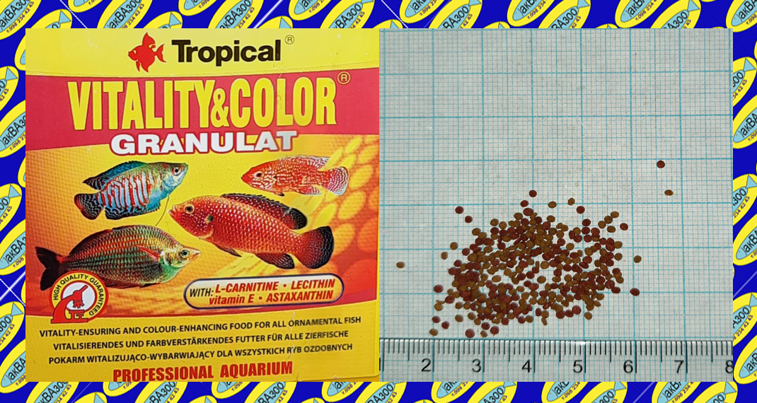 Это корм в виде медленно тонущих гранул со спирулиной (6%), предназначенный для ежедневного кормления растениеядных и всеядных рыб в пресноводных и морских аквариу¬мах. Содержащиеся в корме водоросли являются источником легко пере¬вари¬ваемого белка, витаминов и микроэлементов, которые обеспечивают превосходную кон¬дицию рыб, их рост и развитие. Спирулина необыкновенно богата натуральными кра¬сителями из группы каротиноидов, которые регулярно подаваемые, интенсифици¬руют окраску рыб, а также влияют на многие физиологические процессы, в том числе созревание и расплод. Добавка цеолита благоприятно вли¬яет на пищеваритель¬ную сис¬тему и удаление токсинов из организма рыб.