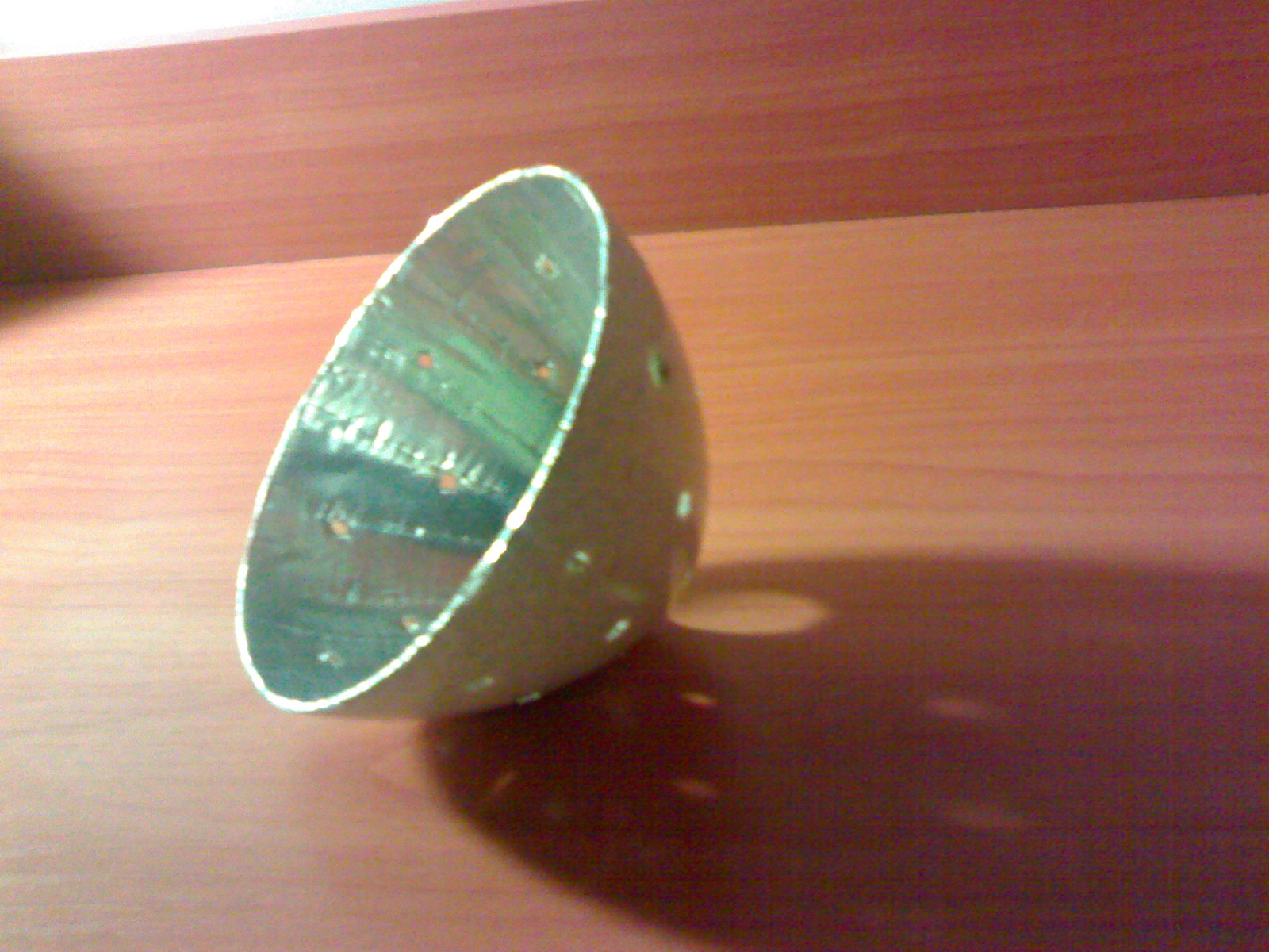 С внутренней стороны лейка была обклеена очень плотной фольгой, оставшейся еще с советских времен, щас такую фиг найдешь даже за деньги. Клеящим материалом выступил двусторонний скотч, который попался то ли старый, то ли некачественный - пришлось помучаться при наклейке скотча.