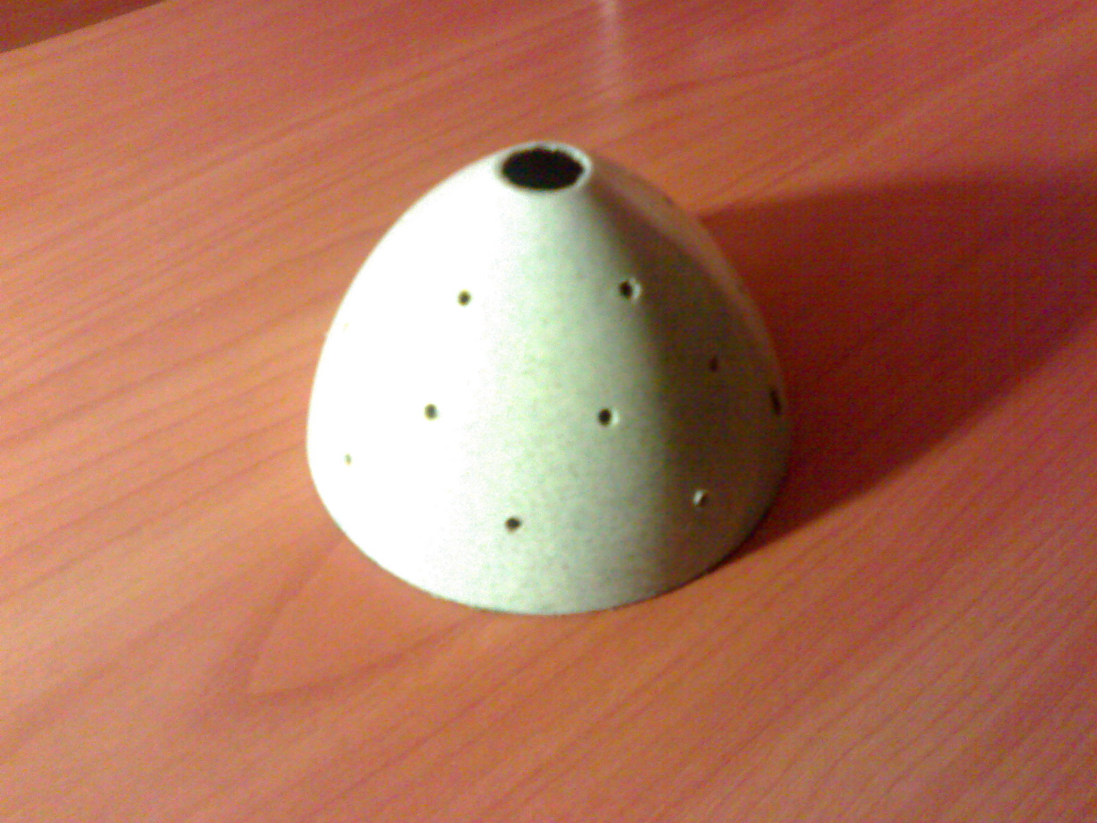 После покупки ваза заняла почетное место наверху книжного шкафа, в виду того, что надо было продумать устройство крышки с освещением, другого оборудования. Обдумывание заняло порядка недели, в результате были сделаны выводы: крышка должна быть легкой для устойчивости, крепиться жестко, иметь отражатель в виду высоты столба воды. Выбор материала был сделан в пользу пластмассы. Вооружившись рулеткой, которой были предварительно замерены диаметры вазы, начались походы по магазинам, супермаркетам в отделы освещения, посуды. В результате был приобретен пластиковый контейнер для продуктов, пластиковая лейка. По размеру контейнер должен был входить в вазу, лейка соответственно в контейнер. Радости и удивлению не было предела, когда контейнер стал в вазу тютелька в тютельку – видимо их делают либо на одном заводе, либо специально под размер друг друга.