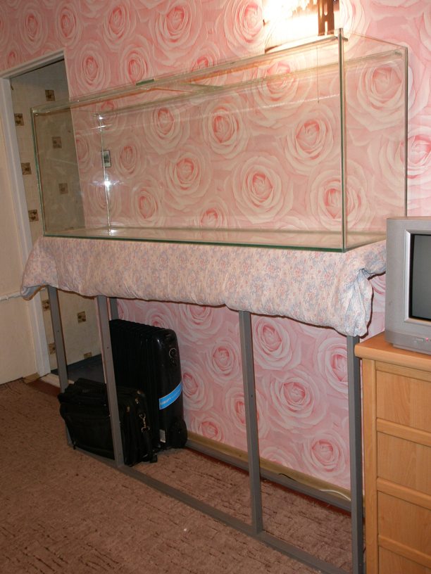с этим к стати связана и высота тумбы. ранее мне было выделено место в углу комнаты над длинной батареей, а потом (после заказа каркаса) было сказано, что не возможно сидеть за компом с аквариумом за спиной... ну да ладно - переехали в зал. ох уж эти мужчины...