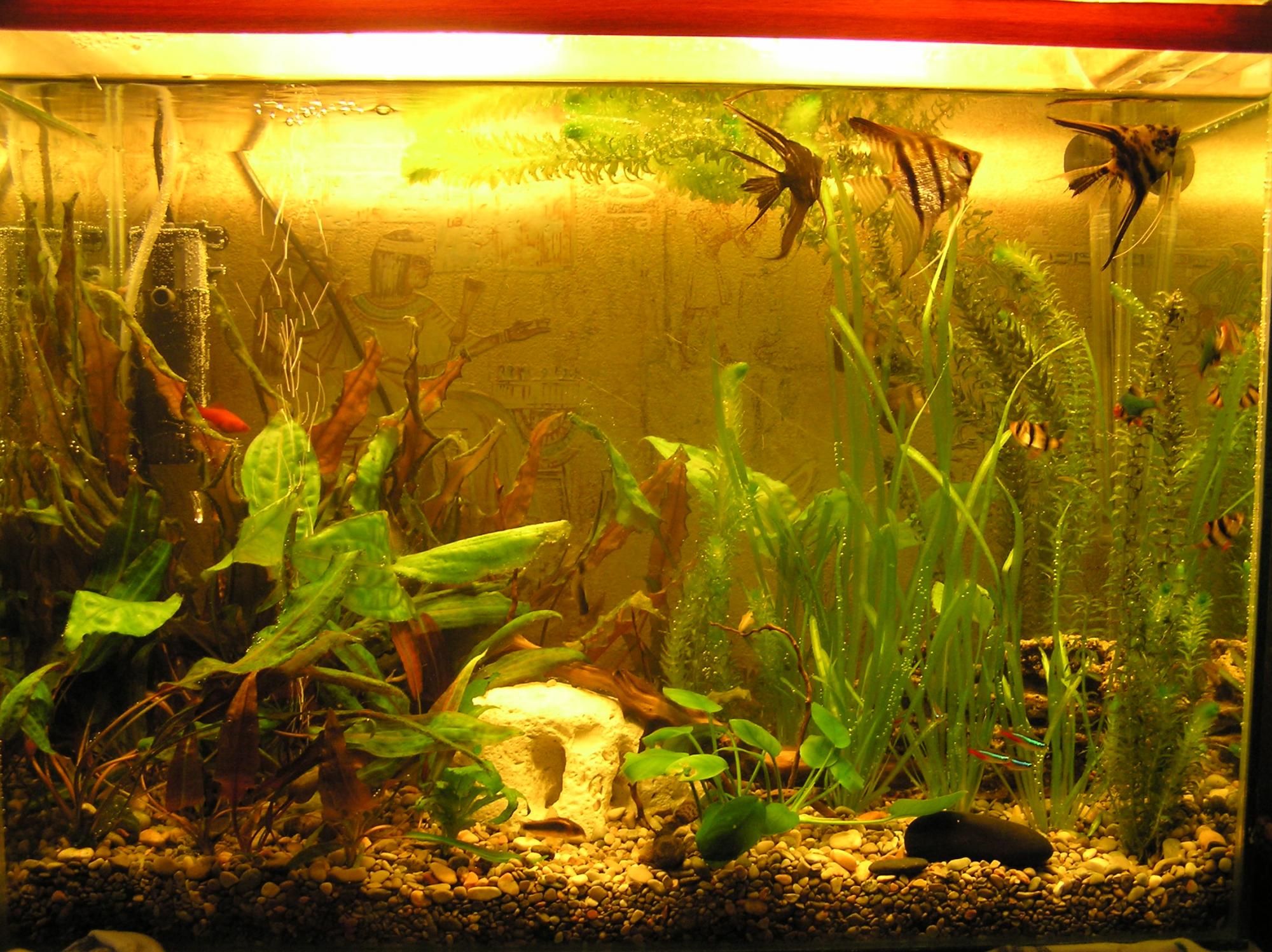 на фотке аквариум сразу после запуска.. вода отстаивалась 2 суток, так что была сравнительно недавно залита, пузырьки не успели убежать)