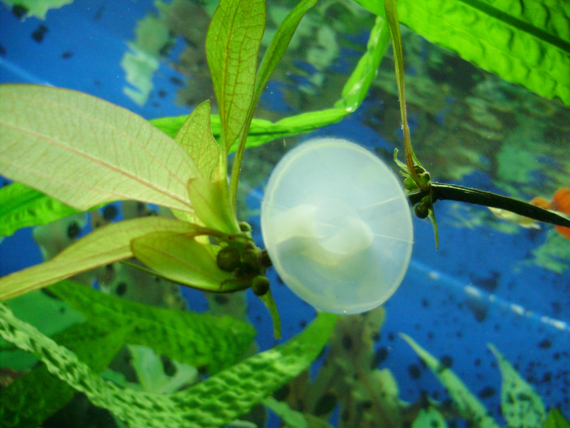 точнее сказать над аквариумом,а когда сформируются будут в воде.