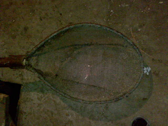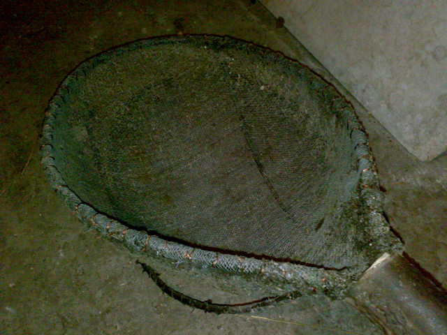 Ну а для зимней добычи мотыля выгибается с металлической полосы,шириной 2 см и толщиной 2-5мм круг,диаметром25-30см.В разрыв круга вваривается трубка,длиной 15-20 см и диаметром 4 см.В трубу будет вставляется держак,поэтому в трубке сверлится пару отверстий,для крепления саморезом держака(ну как на лопате крепится держак).Берешь металлическую мелкоячейную сетку,формируешь с неё ,по диаметру круга карман и проволокой прикручиваем к кольцу.