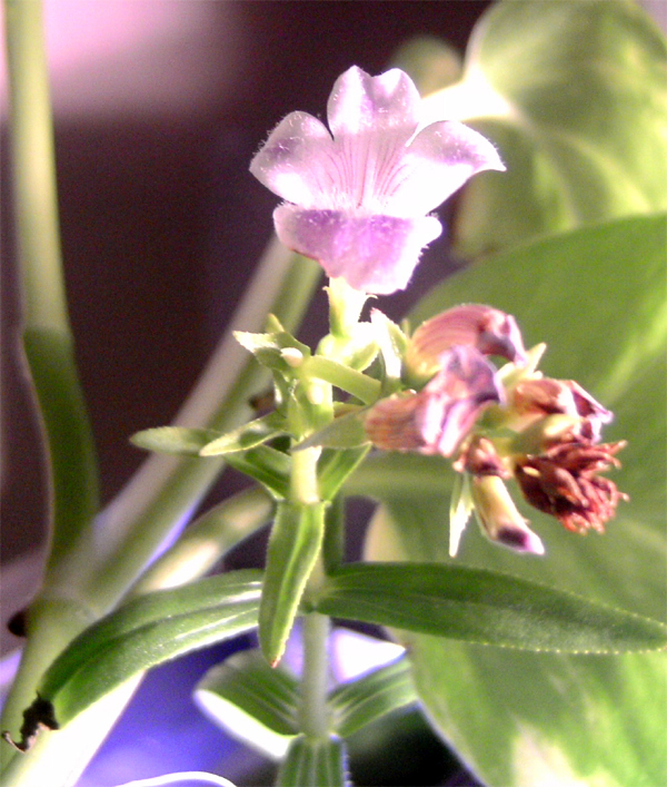 Цветет красиво - веночек из маленьких синеньких цветочков. Но чтобы его дождаться мне пришлось постепенно поднимать крышку над аквариумом примерно на 30 см.