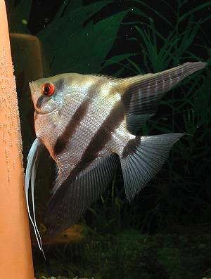 В посте №1 на фото слишком уж с цветами перебрали. Вот тоже нашла нечто подобное - наверное точно лампы или подкрасили. А на второй фотографии по-моему как раз самый правильный цвет полосатой классической расцветки скалярий.