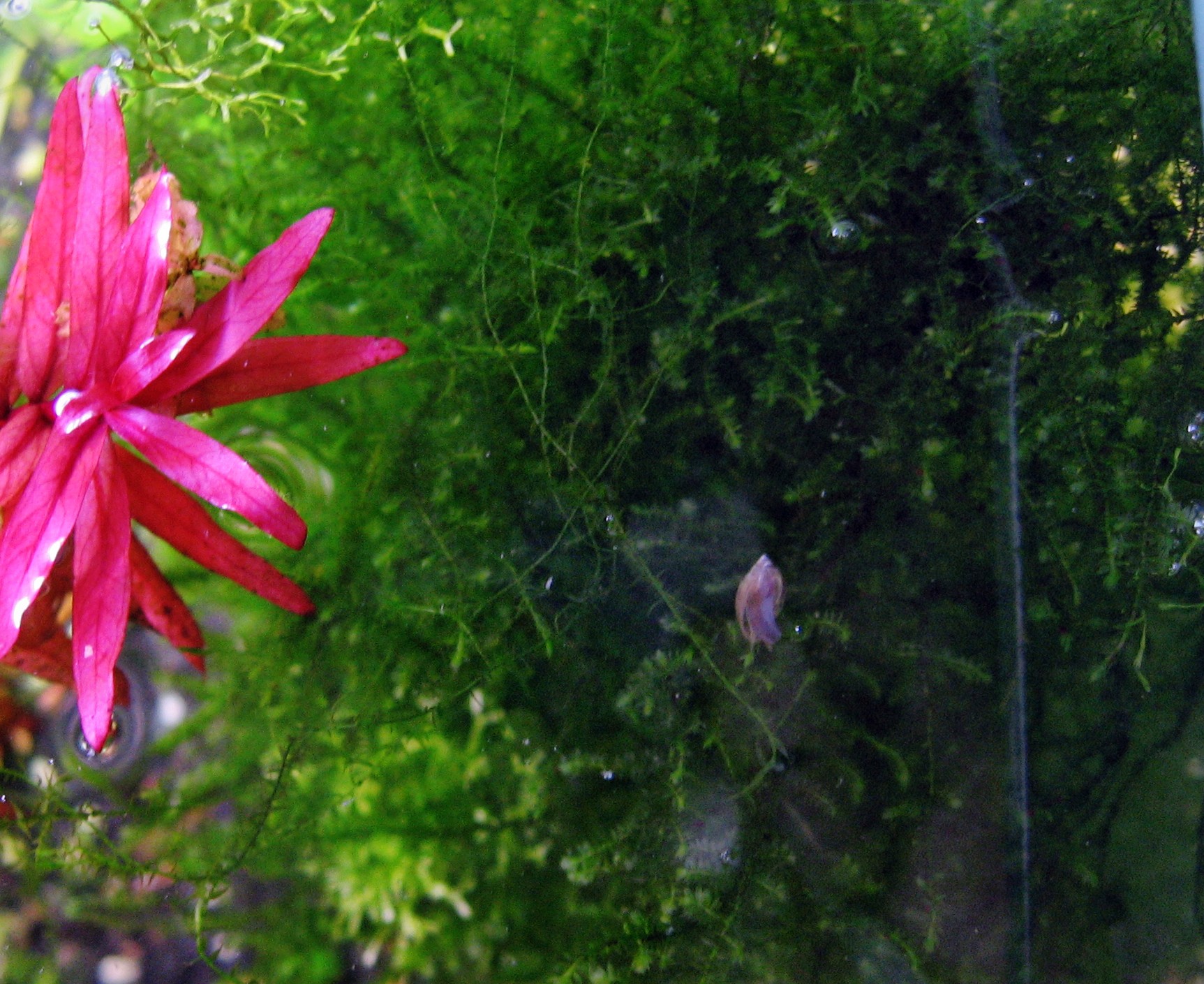 Стебли у него очень тонкие, самые тонкие из стеблей среди всех видов мхов, что мне доводилось видеть. Когда стебель молодой он по толщине практически такой же, как и нитчатка (и самое плохое в том, что она любит забраться в заросли этого вида мха и с удовольствием там попаразитировать, надеясь остаться незамеченной). Различить их в этот момент можно лишь по формирующимся листочкам вдоль стебля мха, и по разной тепени эластичности (стебли мха намного более упругие).