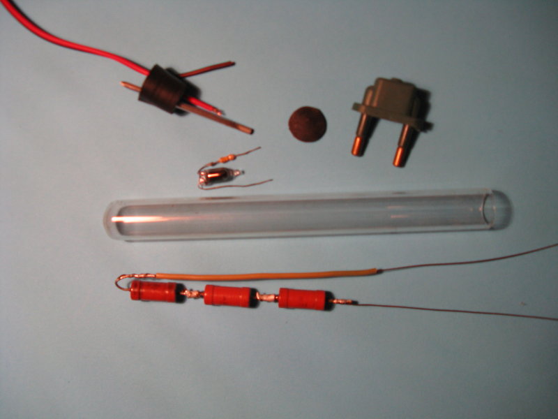 Рассчитываем на сколько ватт будет наш обогреватель, припаиваем резисторы друг к другу, тем же способом присоединяем к ним проводники и надеваем на один проводник отрезок полихлорвиниловой трубки, затем помещаем их в пробирку и засыпаем мелким сухим песком. Закрываем тонкой пробкой следя, затем чтобы проводники располагались на разных сторонах пробки, и не очень плотно, чтобы песок дышал. Надеваем на один проводник трубочку, припаиваем и индикатор. Толстую пробку покалываем иглой от мед. капельницы у края, подеваем в иглу одну жилку электропровода и вытягиваем иглу, тоже проделываем с другой жилой только проколов пробку на другом краю. Припаиваем все у пробки обогревателя и осторожно, немного поворачивая, закрываем. Прикрепляем электровилку, проверяем правильность соединений тестером, если все в порядке – включаем в сеть. И все.
