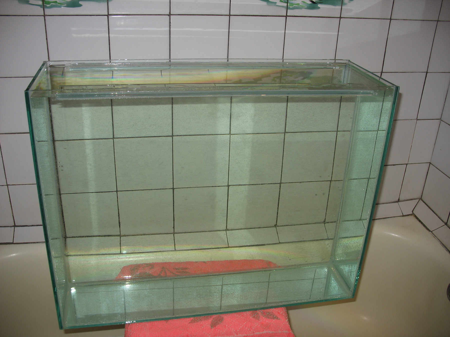 Вот вчера залил, длина 650мм ширина 240мм высота 500мм стекло 6 мм воду залил под край, 2 ребра 40 мм без стяжки. Я обезжиривал смесью бензина для зажигалок Zippo и медицинского спирта соотношение 1:1