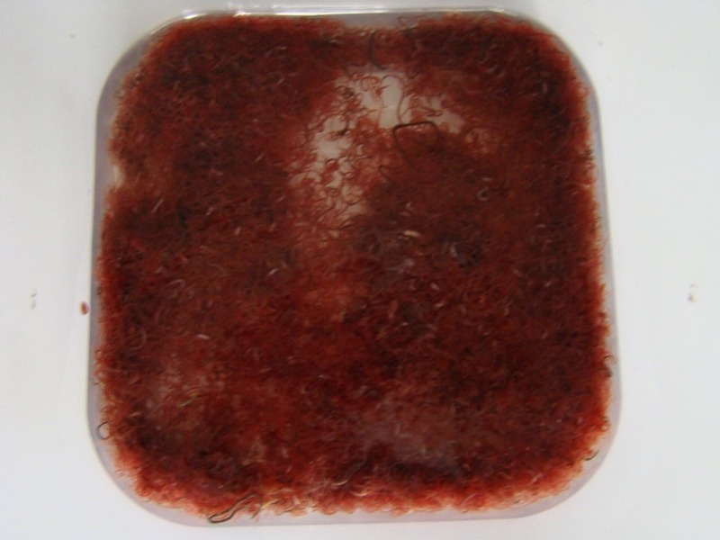 4. Теперь, когда вода холодная наливается в плошку вы можете заметить поднимающуюся муть. Главной задачей есть. Промывать трубочник под холодной водой до тех пор, пока вода не станет прозрачной. Важный момент: при сливании воды заметьте, что живой трубочник сразу опускается на дно, спустя несколько секунд, а дохлый плавает у поверхности. От дохлого надо избавляться, именно он несет всякую заразу, которая заражает ваших рыб.