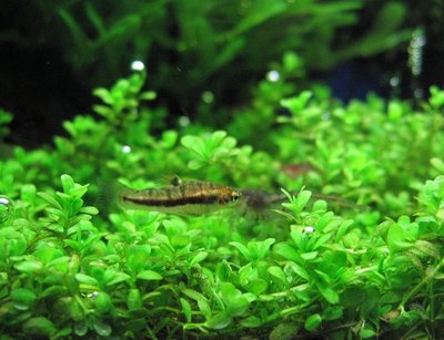 Есть у меня http://img151.imageshack.us/img151/7471/xiphlh3.jpg ривулус ксифидиус,пара в трех литрах вполне комфортно себя чувствует и нерестится.Самец до 4 см,самка 3,5см.