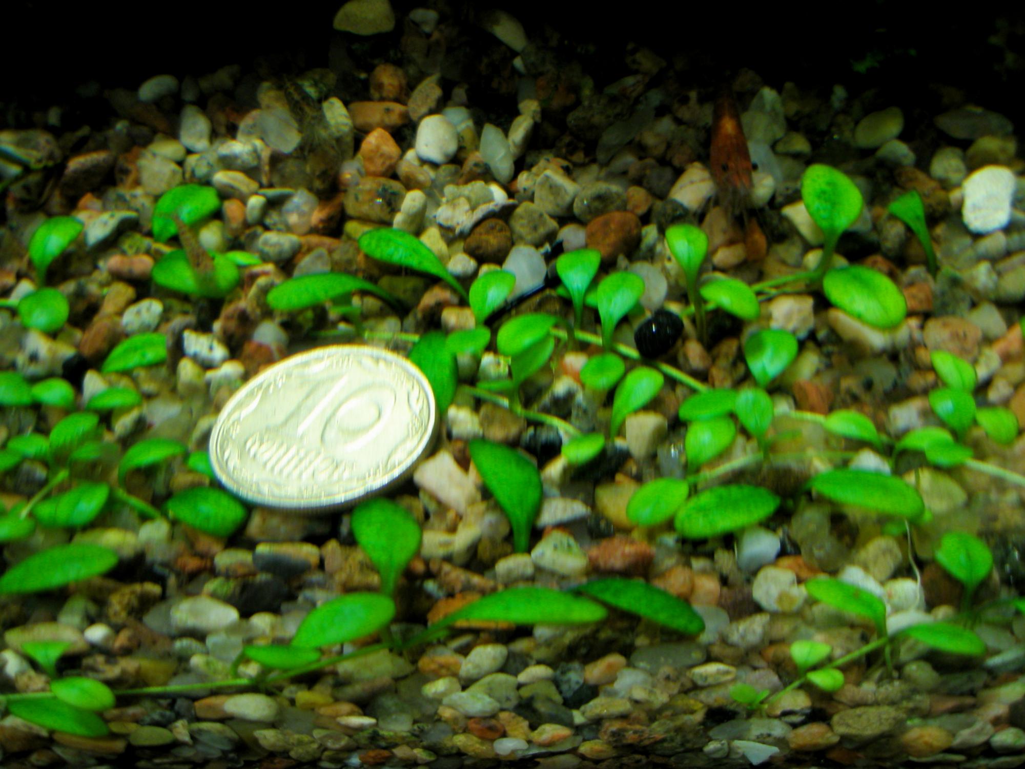 Хочу поделится небольшим секретом который хорошо подходит к микробанкам. Если глосостигму держать при хорошем свете но при небольшом недостатке удо она растет с очень маленькими листьями которые выглядывают из почвы лежа на грунте. При таком содержании она растет медленно но уверенно, в отличии от глосы которая растет в моем 60л у которой листья почти с 10 коп монету то здесь льстья очень маленькие. http://aquaforum.kiev.ua/attachment....1&d=1244584361 На фото видно какая значительная разница в размере листа между деткой из 60л аквариума и растением из этой банки у детки взятой из 60 л лист в 2 раза больше чем из 10л.