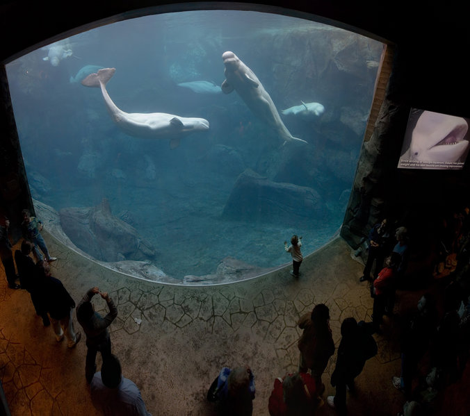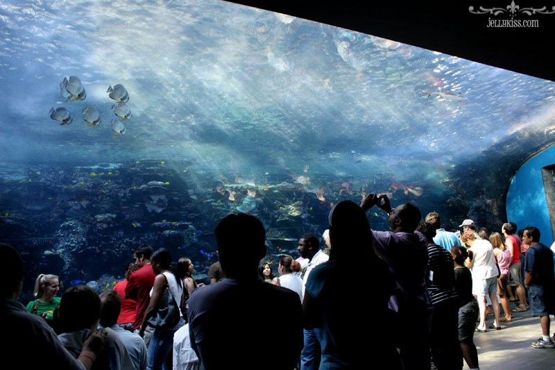 В нем более чем 8,1 млн. галлонов (31000 м ³) морской и пресной воды, и содержится более 100000 животных 500 различных видов.