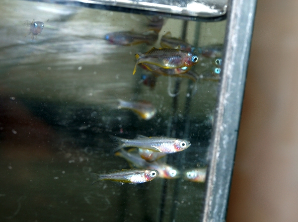 иритеринки красавцы - ухаживают за самочками уже на ура. и глаза и жаберная крышка зеленоватым светятся - отличный контраст псевдомугилям-голубоглазкам