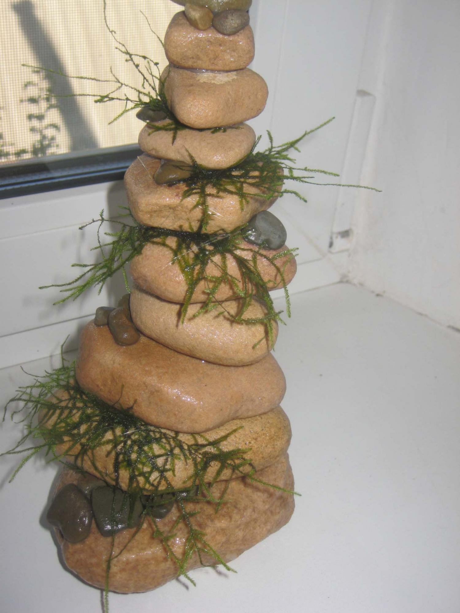 Хочу продемонстрировать вам,горочку которую я склеила.Она была придумана с той целью,чтобы приростить на неё мох и через некоторое время полчить зелёную гору))) Для горки я использовала камни из карпатских рек,которые можно купить в местах где продают декоративный камень. Для склеивания я взяла спец.аквариумный клей Титан. Камни просто вымыла и высушила,потом нанося небольшой слой склеивала.Дня 2 эта конструкция у меня сохла,и 1 день отстаивалась в ведре с водой. Ну вобще вот и все.