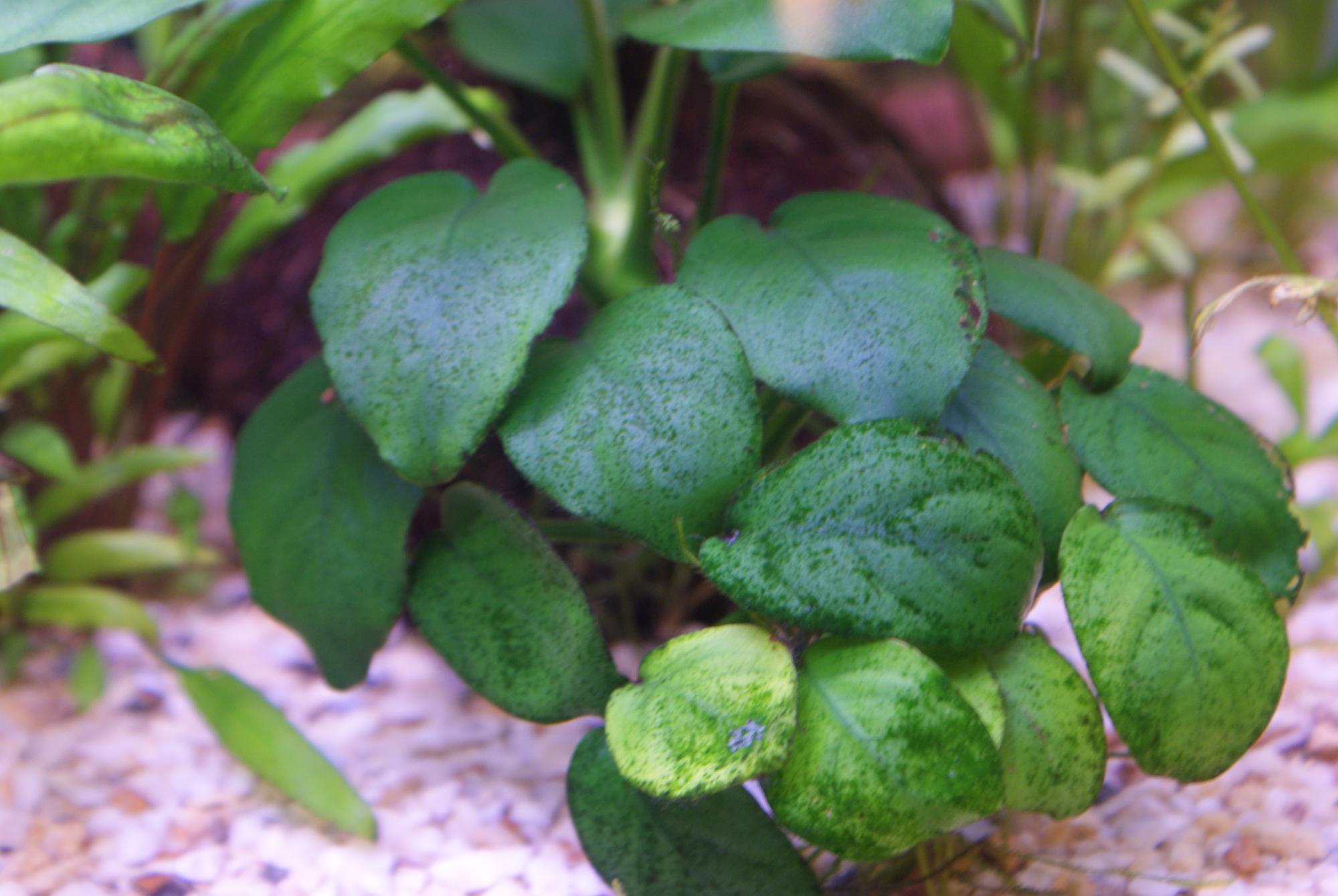 По анубиасу - они почему то первые обрастают и бородой и зеленкой. Почему - не знаю.