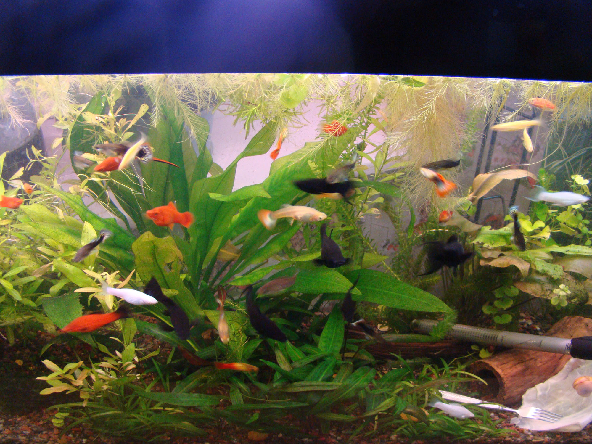 Там сейчас есть: кучка гуппи, пара молли черные лиры, пара черно-красных меченосцев.
