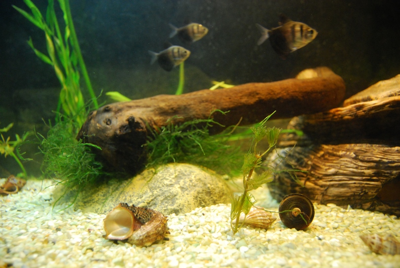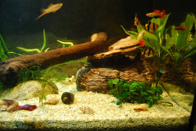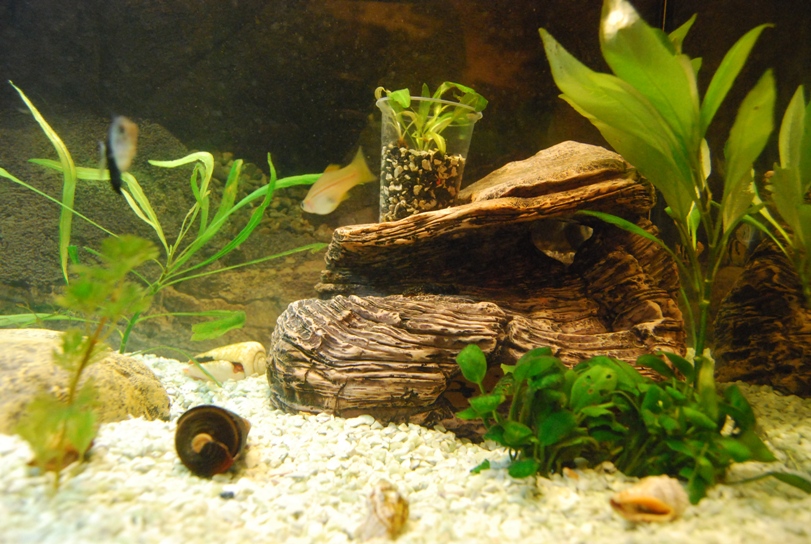 Я тоже поперва так думал...потом наросло растючки, стало мало места, декорации стали какими-то огромными и стали забирать пространство для плавания...но они без дела лежать не будут-скоро запуск 30 литров и одна из них туда обязательно попадет.