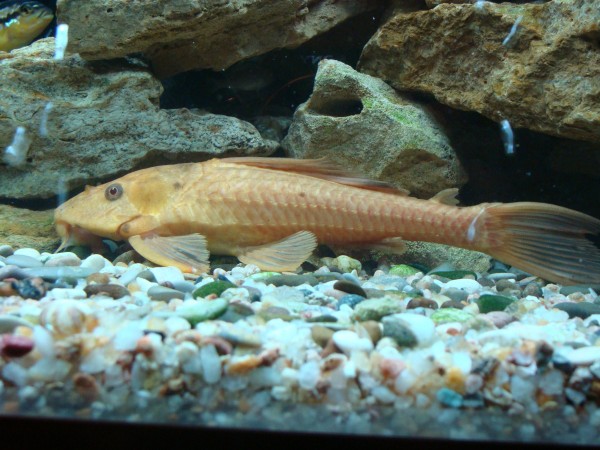 Сом альбинос, думаю, кто-то из паранциструсов. Размер - 16-17 см, возраст - 2 года. Помогите, пожалуйста, точно определить кто это?