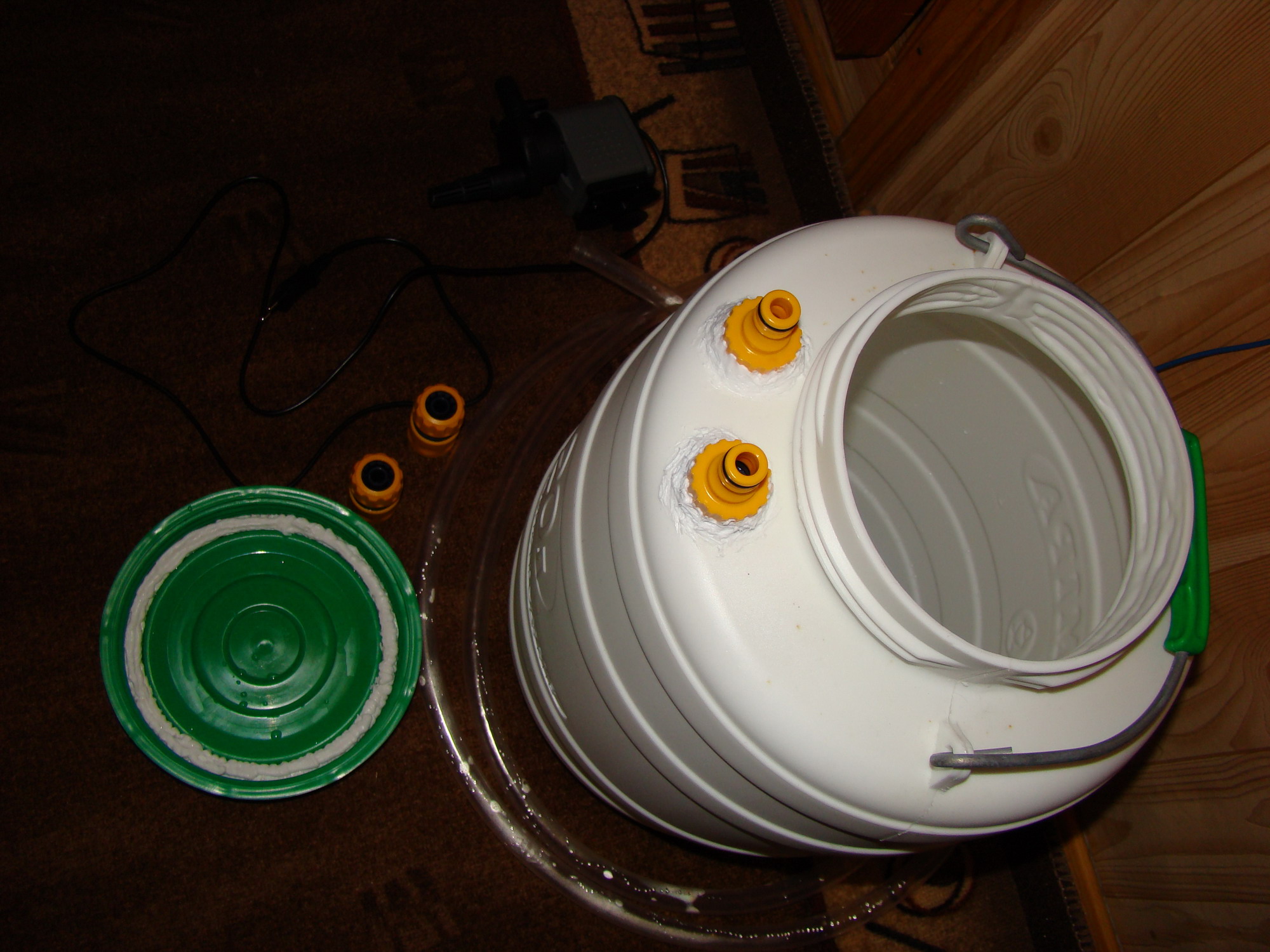 пути решения: 1) доработать герметизацию фитингов; 2) поместить помпу во внутрь боченка (как рекомендовал mdn), но помпу планирую опустить на дно боченка, что бы она брала воду снизу и прокачивала вверх в акву, тем самым меняется механизм очистки (вода поступает сверху боченка и фильтруется к низу)