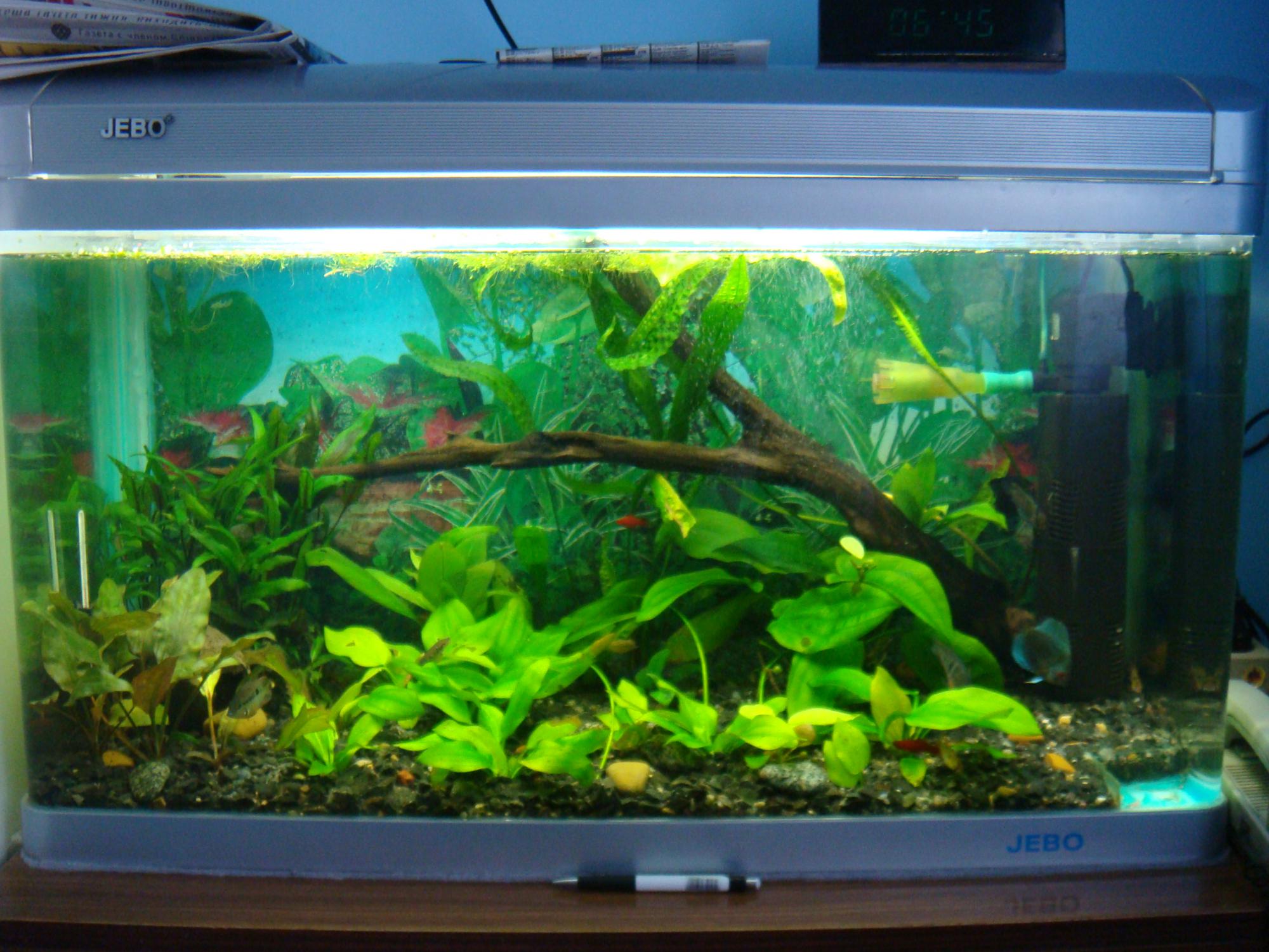 При покупке аквы я сначала хотела Жебо на 160 или 200 л. Но в магазине сказали, что свет в Жебо расчитан, типа, только для исскуственных растений и рыб.