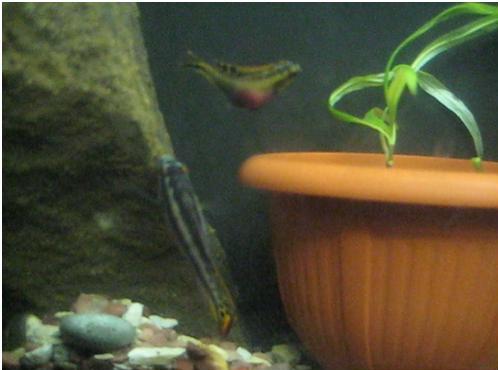 Доброго времени суток! Я с вопросом о Pelvicachromis pulcher . Живет у меня парочка! Недели 3 назад заметил у них изменение поведения: самка начала изгибаться и показывать своё розовое пятнышко, а самец плавал вокруг неё и "дёргался". Я поискал в интернете и понял, что у них начались "брачные игры". Быстренько соорудил им гнездо, которое они сразу заметили и стали обживать! Как мне показалось всё шло нормально... а теперь у них пропал интерес к домику, да и поведение у них изменилось - плавают, как и раньше! Что случилось??? Что я не так сделал?