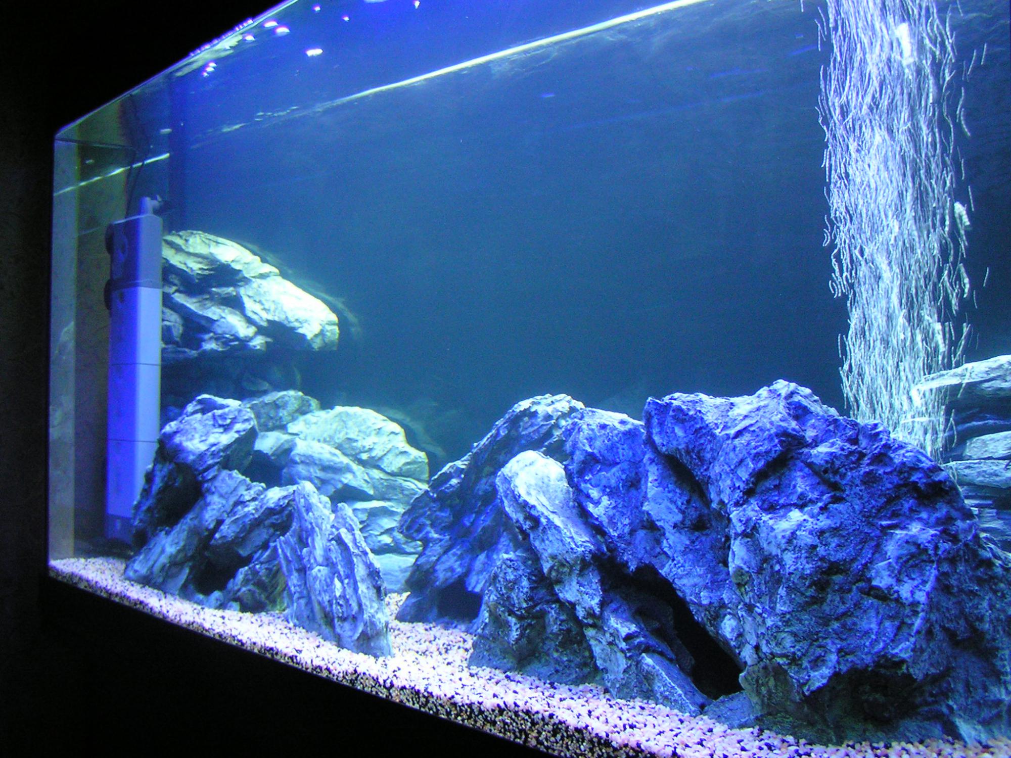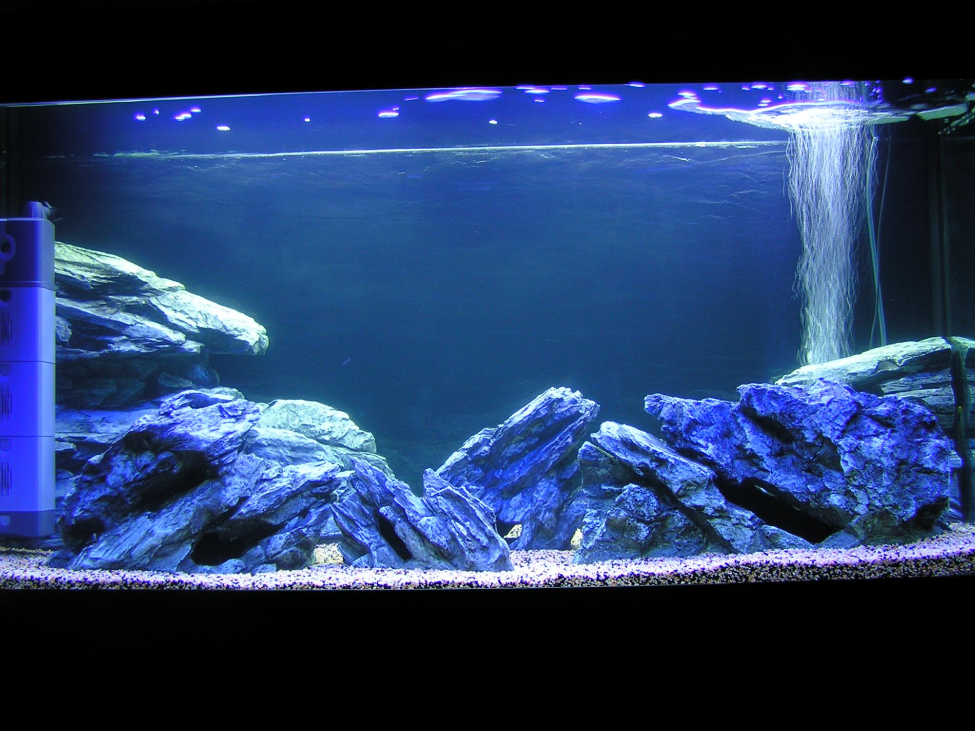 Фильтрация слабая, для такого аквариума с цихлидами и без растений очень желателен внешний канистровый фильтр. А камни красивые. И фон приклеить надо, или с внутреней стороны, или с внешней на что-нибуть типа "глицерин" чтобы фон было видно, а не переотражения в аквариуме