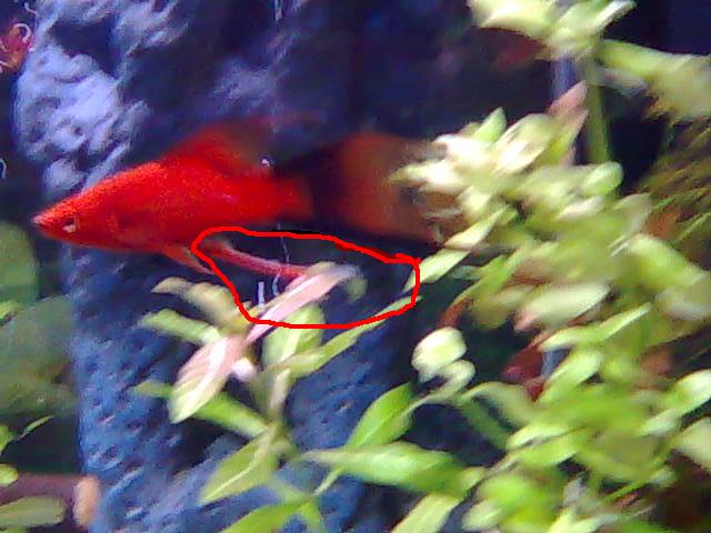 самка начала перераждатся, теперь её бъют моллинезии самцы и самец меченосец.