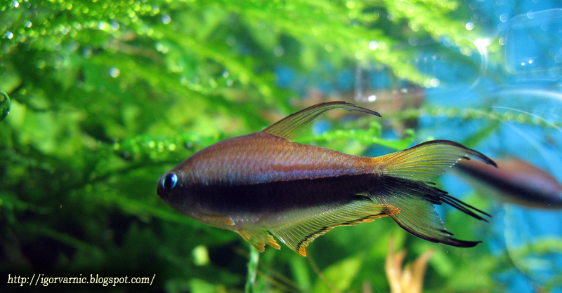 Перебирала свои старые фотографии и нашла чудесную рыбку - керри. Как же про нее я могла забыть!  Кстати, есть у нее противная особенность - кусать скалярий за плавники (не только мои наблюдения). Жаль, что самки у них никакие. Но можно держать только самцов - они, конечно, очень эффектны.