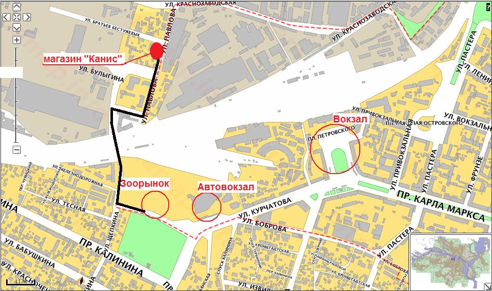 Вот на прикрепленной карте посмотрите, отмечен зоорынок и один из сети магазинов "Канис". Если будут вопросы, пишите в личку.