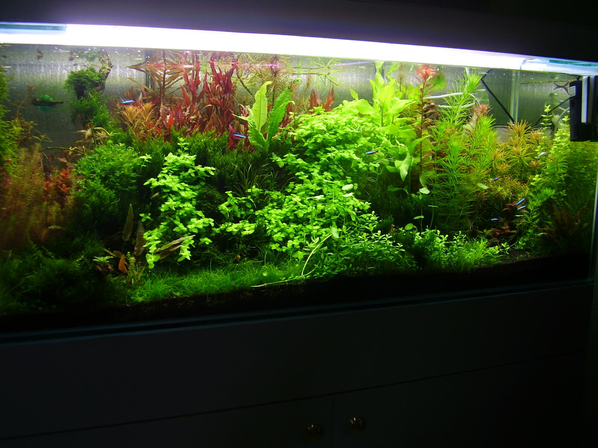 второе - сильный и цветной свет ЛЛ ламп (около 1 вата) с УДО и СО2 - в этом состоянии можно проявить все колоровые качества длинностебельки и при этом почвопокровка уже начинает хорошо расти.
