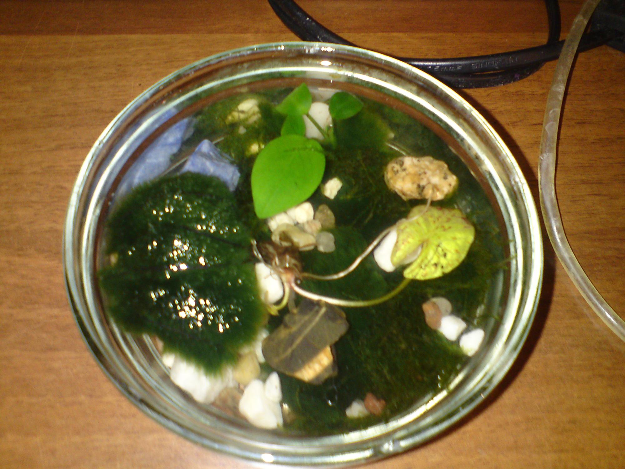 Пока мечтал о креветочьнике на 13л., думал где бы взять грунта, камешков, мхов. Решил я короче...совершенно спонтанно...сделать что то в нерабочей лампочке, ну и решил слелать наноаквариум.