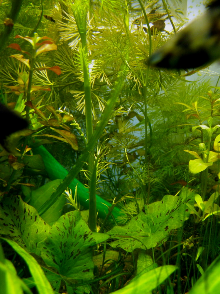 Так это в принципе так специально сделано, чтобы был избыточный источник СО2 и продуктов жизнедеятельности, кроме того, есть разделения по нишам- ок. 25 рыбок разделяют между собой дно- это щиповки, пескари, бычки. Еще ок. 20 рыбок держутся в основном у дна- это амурские чебачки, колюшки.