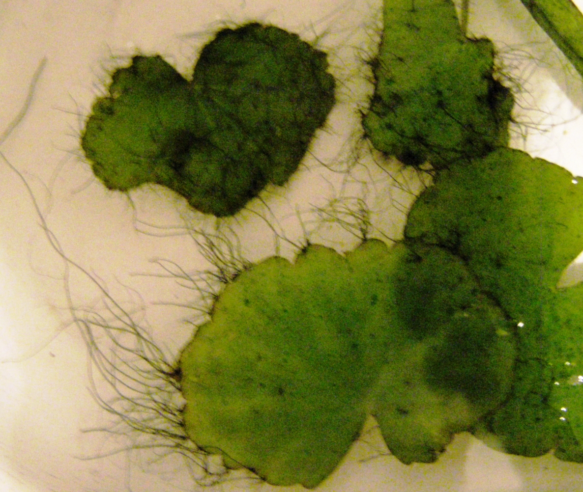 На эх.тинелиусе - появляется 1-2 хвостика, мм по 3-5, по времени где-то за 3-4 дня. Он на течении. Там с ним воюю с момента появления - через 2 недели после запуска. Но и не растет большие, и не ветвится - так, волосок и все.