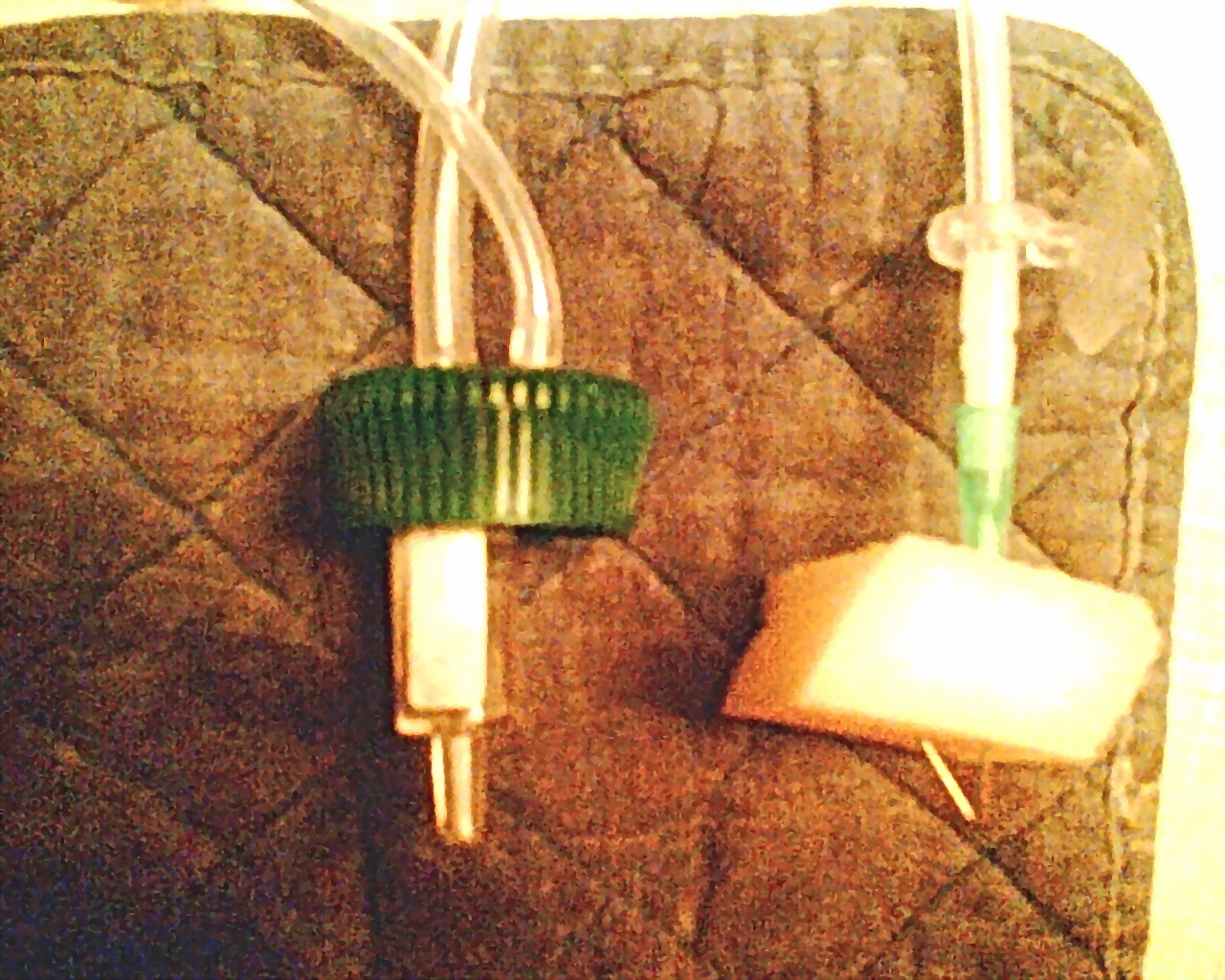 Случилась у меня недавно необходимость повозить рыбрк довольно длительное время (14 часов). Для подачи воздуха в условиях отсутствие компрессора пришлостьсобрать простенькое приспособление. В принципе, ничего нового. Просто, на мой взгляд, функционально собрано Пластиковая бутылка 2 л, в пробке 2 трубки. Одна для закачки воздуха (на ней обратный клапан для удобства закачки автомобильным насосом и кран для предотвращения выхода воздуха, т.к. обратные клапана при высоких давлениях травят обратно. Вторая трубка идет на выход. На ней тоже кран- для регулировки подачи воздуха. Без проблем закачал 2 атм.(бутылки рассчитаны на рабочее давление 3 атм). Этого хватило на 3 часа с подрегулировкай подачи 1 раз в час (из-за падения давления). Подкачку осущствлял не прекращая подачи воздуха. Распылительного камушка тоже не нашлось. Поэтому подавал воздух через поролонку, надетую на изогнутую иглу от шприца. Пузырьки, правда, великоваты, но обнаружилась интересная вещь. Через 14 часов с десятком рыбок в 3-х литровой банке, поролон был довольно грязным, а вода чище, чем ожидал. Т.е. он еще и работал как примитивный фильтр. Не ахти, конечно, но лучше чем ничего. В общем, не кислород, конечно, но хоть что-то. В принципе, не вижу проблем для использования такой конструкции для создания носимого запаса того же кислорода, например. Или для использования в качестве ресивера для СО2 при ипользовании браги- меньше будет уходить в атмосферу ночью. Себе решил установить батарею из 3-х бутылок на отсадник. Он у меня стоит в спальне и ночное жужжание компрессора слегка напрягает. Ради спокойного сна, не сложно вечером качнуть десяток раз насосом