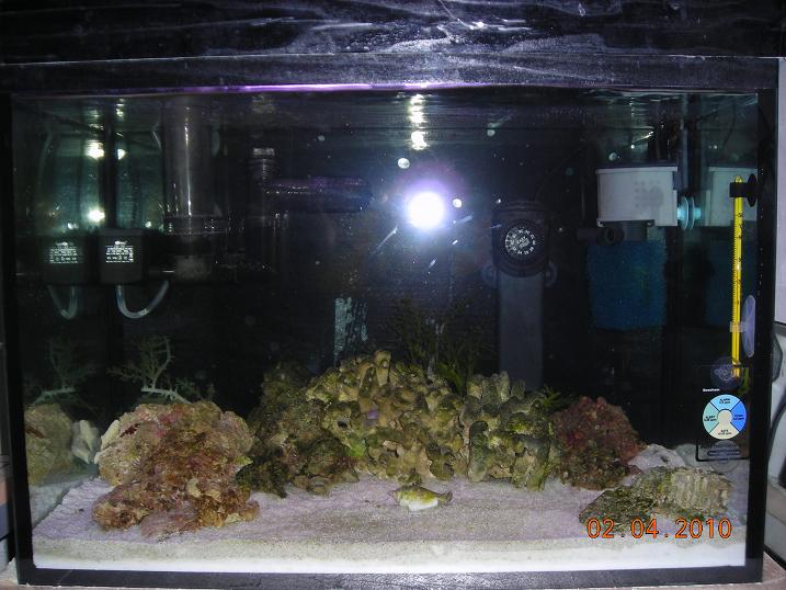 Аквариуму почти месяц, зреет. камни сильно заросли, песок последнее время начал зеленеть, но два стромбуса лопатят его хорошо. иногда пытаются камни полировать, но видать у моих плохой вестибулярный аппарат (часто падают). айптазия множится - уже семь, появилась планария и еще каие-то былые животины на стекле (точка 1-2мм в диаметре и куча ног), может какие-то крабики. айптазия очень хорошо жрет мотыль - собираюсь взять или креветку или скорее маленького хелмона. через пару месяцев цихлиды со 150литров поедут по новым хозяевам и море переедет туда, а в полтинике останутся наверно или пара алунокар или чернополос.