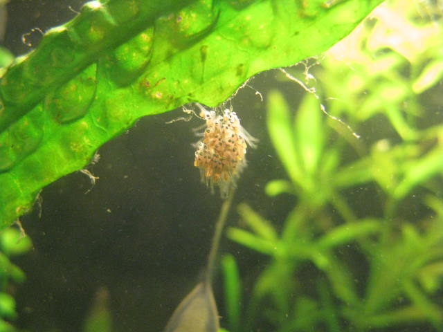 А у меня как-то в общем аквариуме скалярии, чтобы сохранить будующее потомство, перенесли икру в шарик кладофоры, не забыв при этом выскубать там "плешь". Вот такое соорудили гнездо!