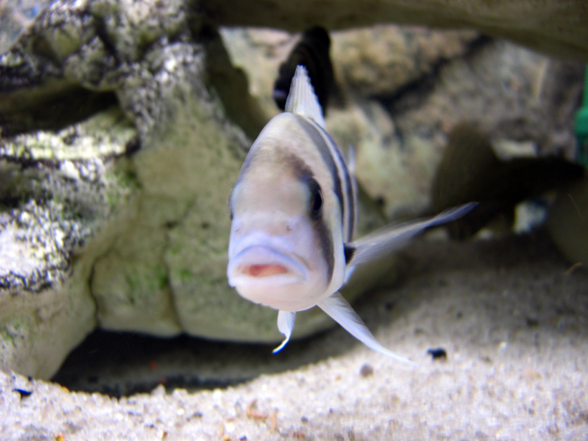 И так на хозяйстве остались жена, теща и сын 8 лет. все кроме пацана работают, ухаживали за рыбами все по немногу и как могли специальных инструкций не оставлял. По приезду обнаружил значительно подросших фронек у самца (11-12см., годовалый) начал расти шишак, самочки то же подтянулись. Все рыбки здоровы, подвижны, обозначили свою территорию, заняли лучшие гротики подвинув альтов и лилиупи.Едят все что и положено для фронек, но предпочтение отдают креветке и рыбе, как не печально малышей альтов подъели всех и видно не один раз.