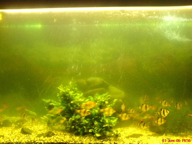 А аквариуме около 20 барбусов, 10 миноров, 4 анцитруса, 3 сомика крапчатых, одна лабео и две "лошади" сомики перевертыши. (рыбы не дохнут, а барбусы и миноры икру метают и жрут ее, после подмены воды)