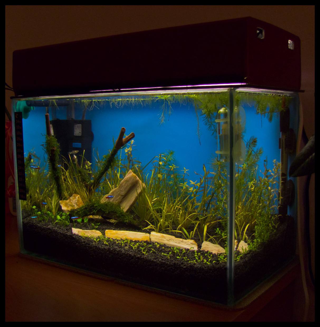 Світло. "Кришка" саморобна. Лампи T5: 4200K 8W + Hagen AquaGlo 8W + 4200K 8W (стоять в наведеному порядку).
