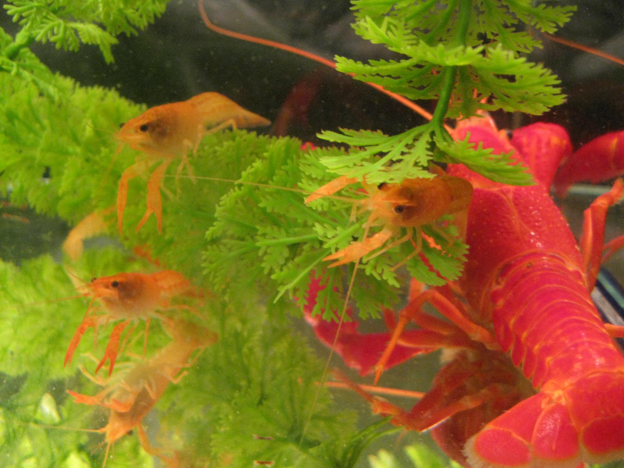 Добрый вечер всем.Хочу рассказать о своих красавцах Procambarus milleri (Рак мандарин).Информации о них мало ,так как он мало изучен. Вот какую удалось собрать информацию с различных источников. Обитает в природе в водных пещерах под поверхностью земли ,родом из Флориды ,обнаружен в 1956 году в Майами ученым Миллером .Цвет варьируется от ярко-оранжевого до желто-оранжевого.Максимальная длина около 8 см .Продолжительность жизни около 7 лет.Температура воды 18-30 .Жесткость воды 15-20. PH 7-8.Рак- мандарин находится в природе на грани исчезновения .На многих сайтах написано мирный в содержании,мне по началу как то не верилось,имея опыт содержения и разведения флоридцев и кубинцев.Но наблюдения мои в течении года показали ,что действительно можно содержать с мелкими неагрессивными рыбками , при наличии нормального кормления .У меня они живут с меланотениями трехполосыми радужницами, барбусами суматранскими ,барбусами мутантами,креветками черри.При кормлении всеядны. Красиво смотрятся в аквариуме с черным грунтом и приглушенном освещением .Содержание с растениями раков возможно.Из наблюдений за мандаринами могу сказать какие растения они не трогают.Это жестколистные растения ,а так же валистнерию, нимфей.Это связано скорее с тем ,что в местах где они обитают (подземные пещеры флориды) нет ни растений ни рыбы .