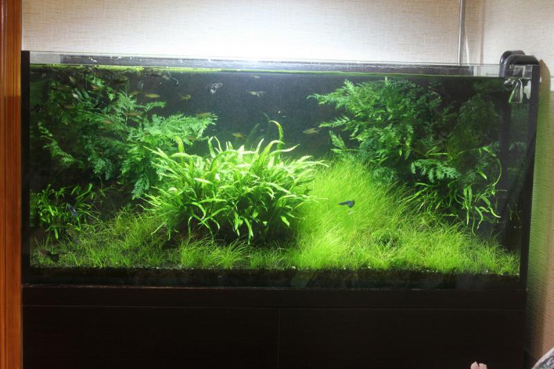 Аквариум был задуман как требующий на себя минимум внимания. И скажу так, у меня получилось! Аквариум был запущен в июне и за это время стриг один раз папоротники. И возможно скоро постригу элеохарис… очень медленный и удобный аквариум.. и так кратко: