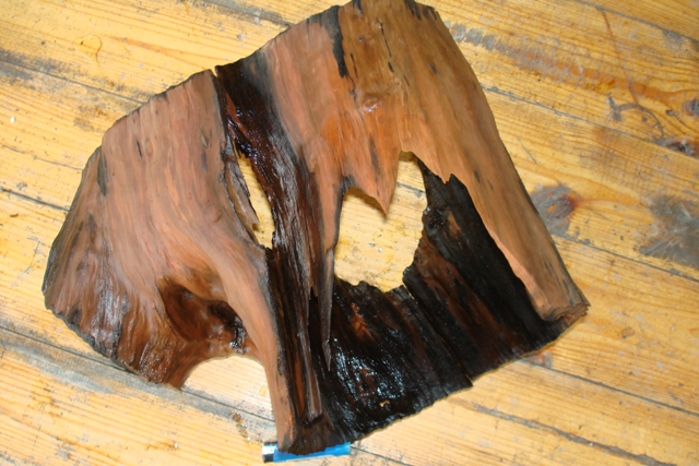 Лот состоит из пня расколотого на две части (лиственница, воду не красит). Птеригоплихты его за три года изрядно отшлифовали. Можно использовать как два отдельных элемента, либо одна конструкция с трещинами (зарыть в грунт). В пне два туннеля, при наличии фантазии можно сделать шедевральный дизайн (мох и т.д.).