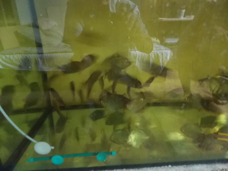 Оце сиджу собі у думаю, мабуть, треба трохи попродавать северумів "червона перлина". Хоч і гарні, але забагато. Крім них, є ще "червоноплечі" і "голд". Також є трохи сколіозних, "дискові" називаються. Є зовсім дорослі, є підлітки. Є і дрібнота, 2-3 см. Дрібноту не фотографував, сіре та біле, дивитись ні на що. Відбірні, самі-самі!, коштують 250 грн./шт. Ціна на плідників 400 гривень за пару, окремо на великих 100-150 гривень, залежно від розміру та забарвлення. Дрібнота - 3-5 грн. Є ще метиніси великі, дорослі, але дуже верткі, і фото неякісні. Ціна на них 80-100 грн. Додані світлини, на мій погляд, дають достатнє уявлення про рибу, що пропонується для продажу. Якщо хочете придбати - телефонуйте 066-172-71-92, Анатолій, або пишіть. Поспілкуємося і дійдемо до згоди. Писати можете на будь-якій мові, але застерігаю, що прочитати та відповісти на звернення зможу лише на українській або російській мовах. Розраховуватися можете в будь-яких грошах, але у вище вказаному єквіваленті. Відправлю будь-куди і будь-як, як це можливо зробити із Запоріжжя, за рахунок покупця. Риба така, що як побачите, то будете в захваті, не пожалкуєте ! І жити ця риба у Вас буде довго, років 10-15, бо ще молода і тільки входить в силу. І лінії, від яких вона отримана, дуже добрі. Загалом, дивіться і замовляйте, товар якісний.
