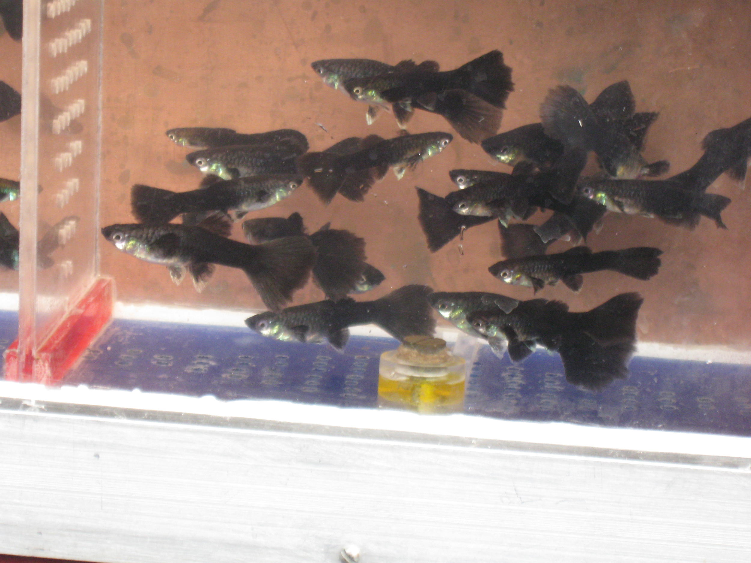 тут много всякого.Есть эти черные,очень необычные гуппи."Венгерские".